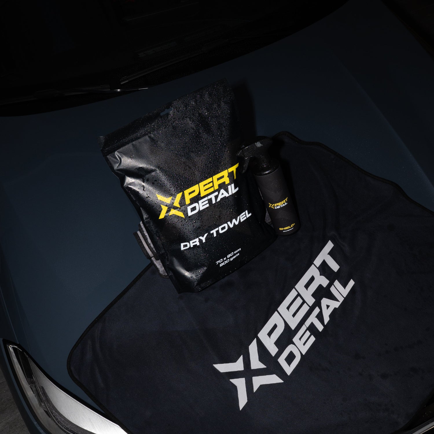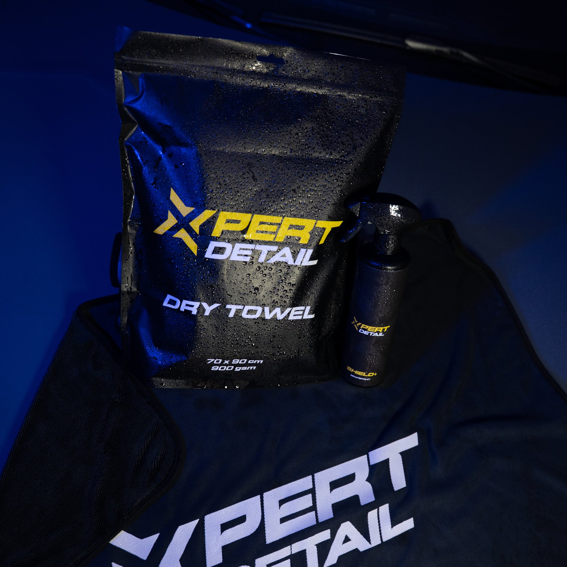 1× Xpert Dry Towel (70×90 cm, 900 GSM) + 1× Shield+ (500ml, spray protettivo idrofobico).